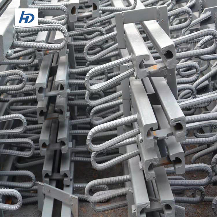板式橡膠制品這一類伸縮裝置,很難滿足大位移量的要求;鋼制型的伸縮裝置,很難做到密封不透水,而且容易造成對車輛的沖擊,影響車輛的行駛性。因此,出現了利用吸震緩沖性能好又容易做到密封的橡膠材料,與強度高性能好的異型鋼材組合的,在大位移量情況下能承受車輛荷載的各類型模數支承式(模數式)橋梁伸縮裝置系列。